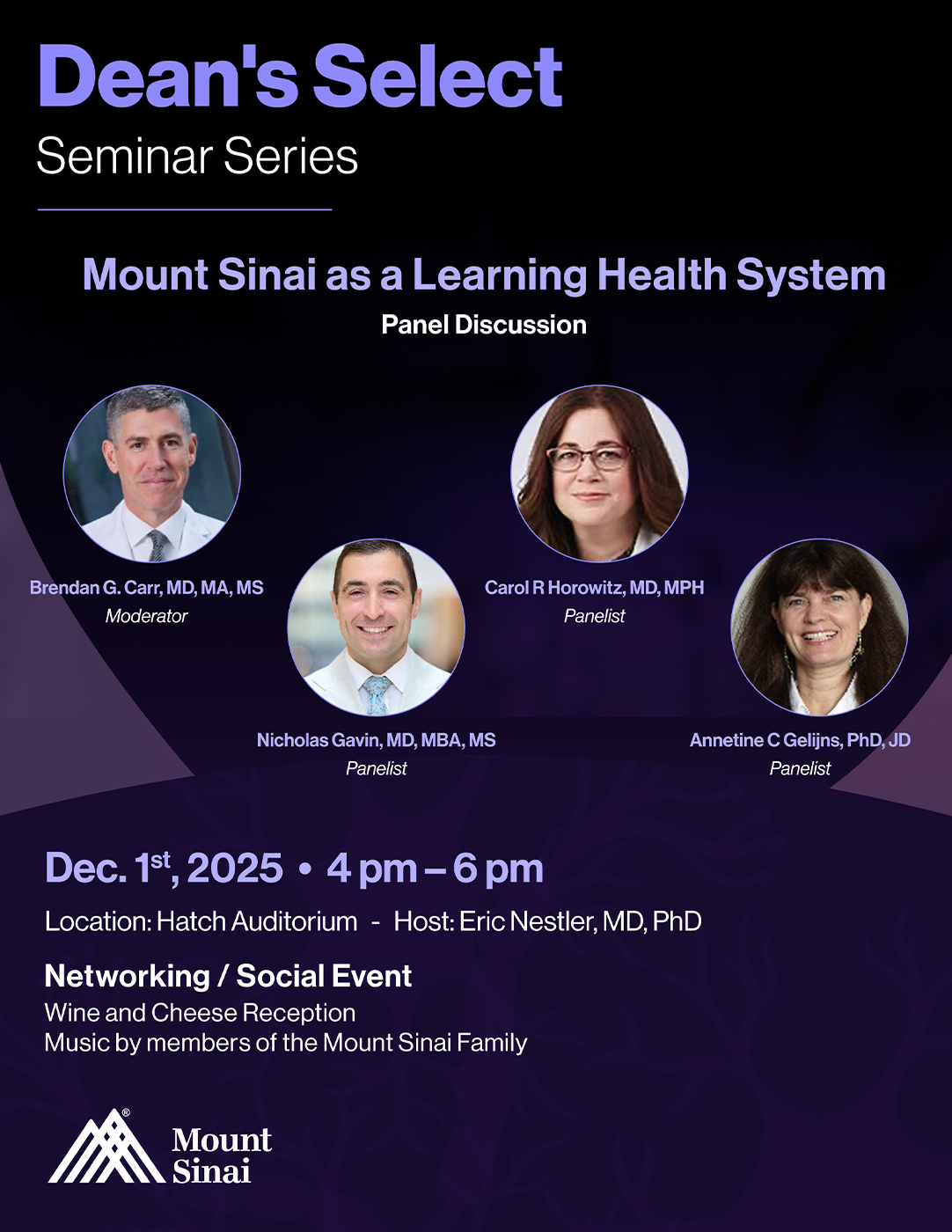For information about the Dean’s Select Seminar Series, please contact Carol Gregorio at carol.gregorio@mssm.edu